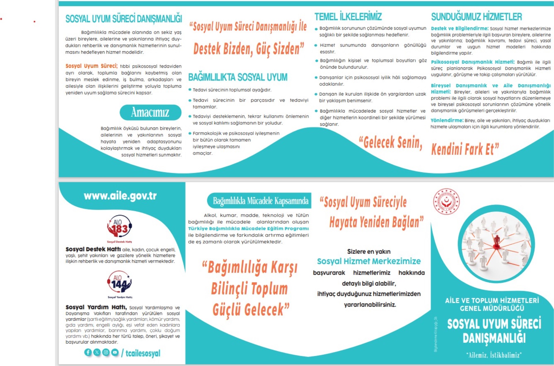 Aile ve Sosyal Hizmetler Bakanlığı Aile ve Toplum Hizmetleri Genel Müdürlüğü tarafından 2025 yılında "Sosyal Uyum Süreci Danışmanlığı" çalışmalarını hayata geçirmiştir. Söz konusu çalışma kapsamında bağımlı birey ve yakınlarının toplumsal hayata uyumlarını sağlamalarına yönelik bilgilendirme, danışmanlık, yönlendirme, psikososyal destek sağlanmaktadır.